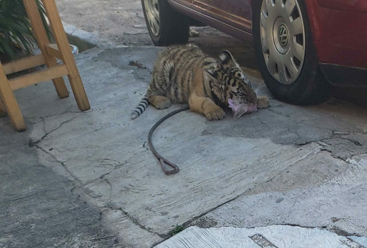 Zitácuaro, Michoacán. Luego del reporte recibido por el C5i Monarca, elementos de la policia de la Secretaría municipal de Seguridad Pública de Zitácuaro realizaron el aseguramiento de un cachorro de tigre considerado exótico y necesario permiso para la posesión.