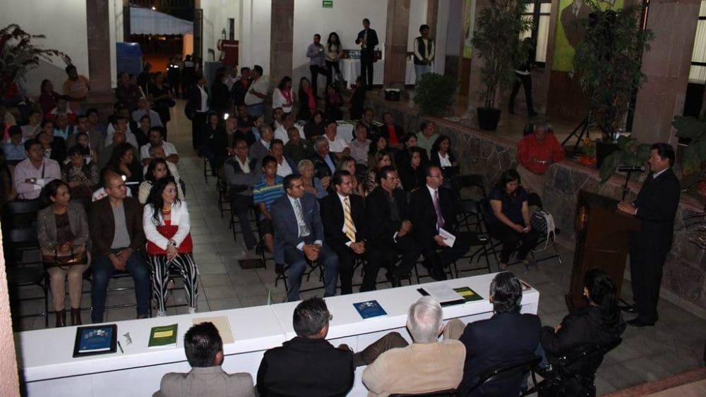 El patio de la presidencia municipal frente al mural histórico de Zitácuaro albergó el evento en el que Gabriel Camporredondo realizó comentarios a la obra de Crispín Duarte, la cual señaló, es un nuevo aporte para que los ciudadanos conozcan el heroísmo de personajes locales como Francisco Serrato, Donaciano Ojeda, Nicolás Romero y Crescencio Morales.
