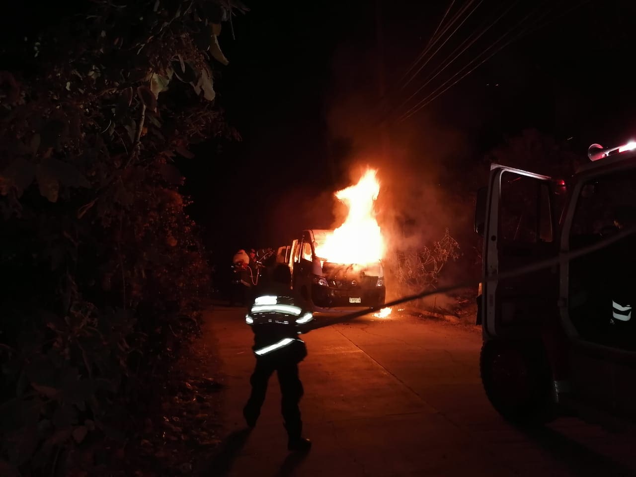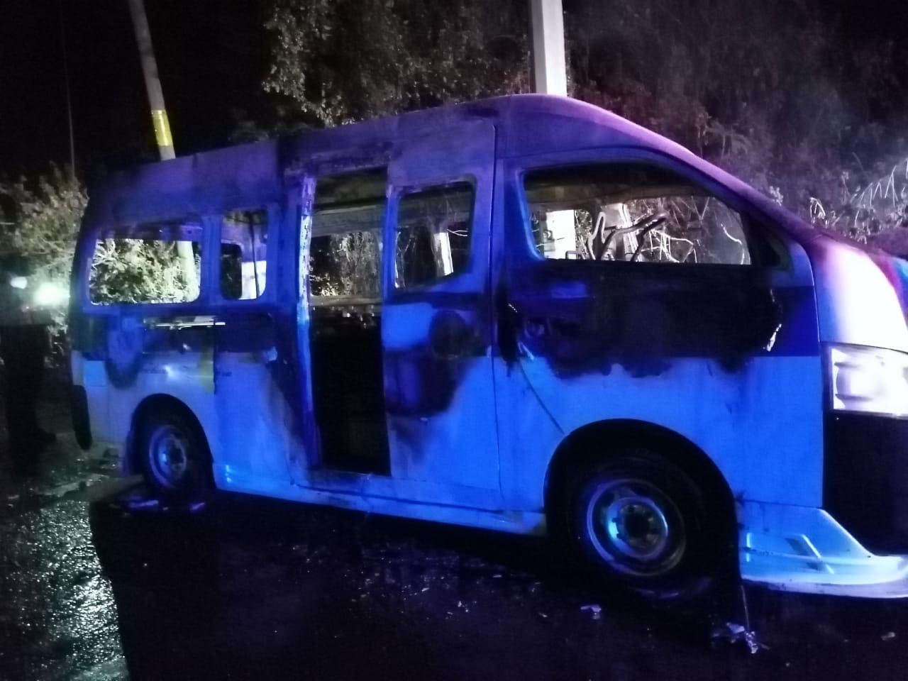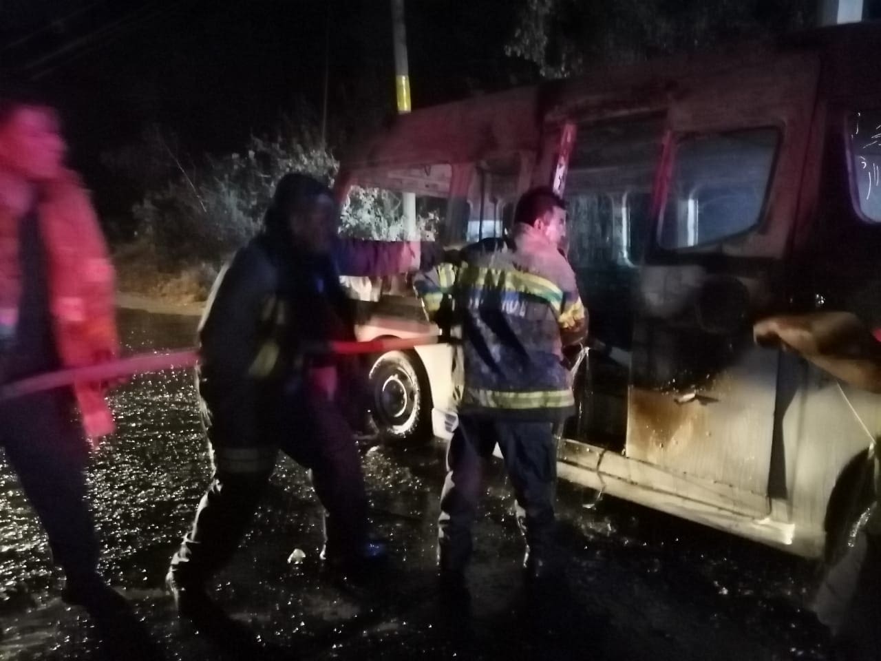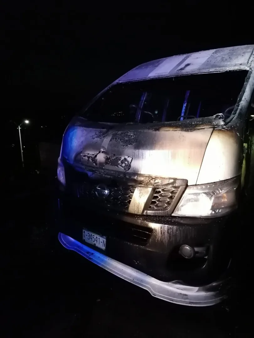 Según reporte, en un inicio se dijo que se estaba quemando una casa, y al momento en que los elementos de auxilio arribaron al lugar, se percataron de que se trabaja de una unidad del transporte público, una Nissan Tipo Urban NB-350, con número económico 35, con placas de esta entidad federativa.