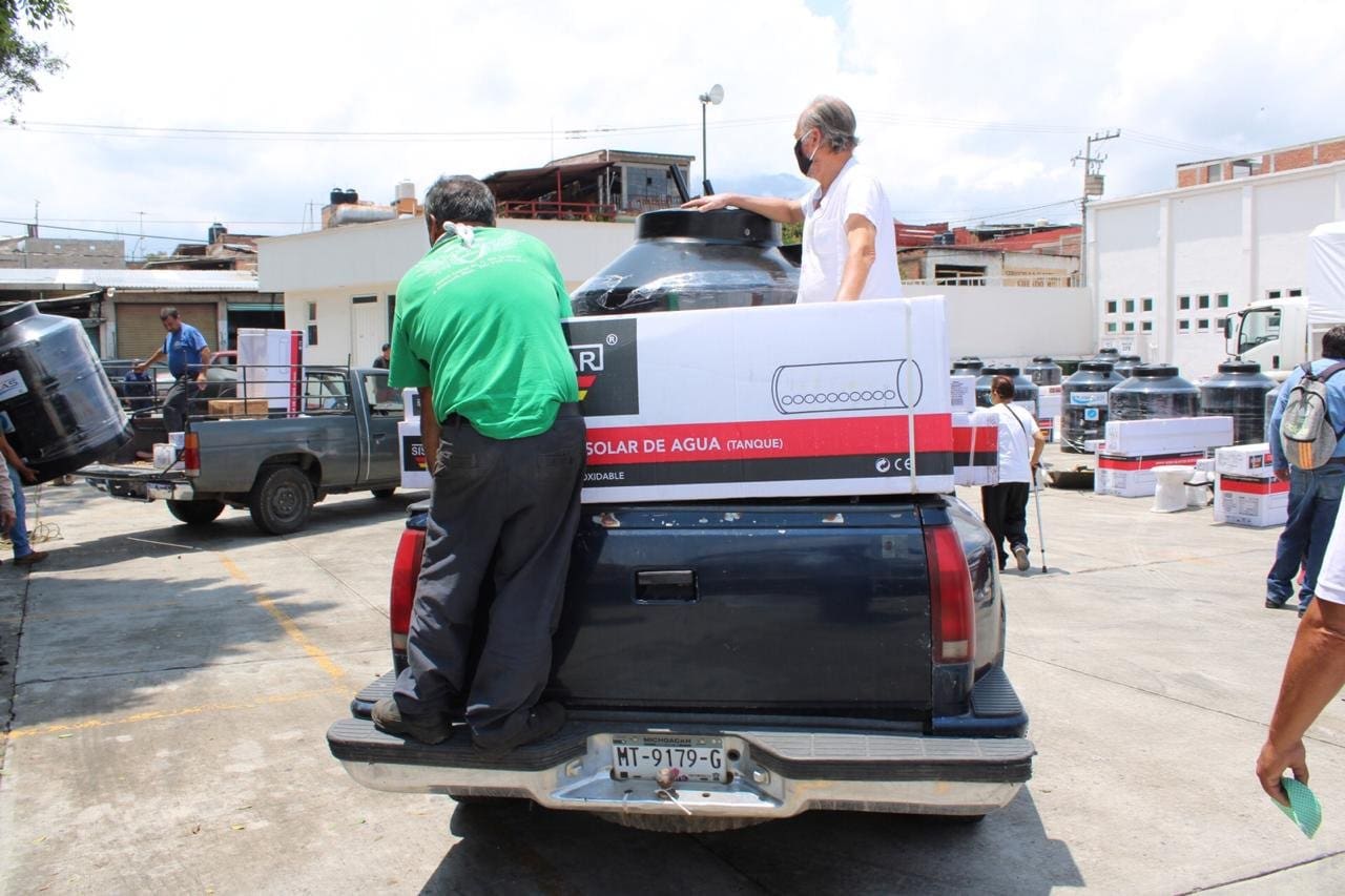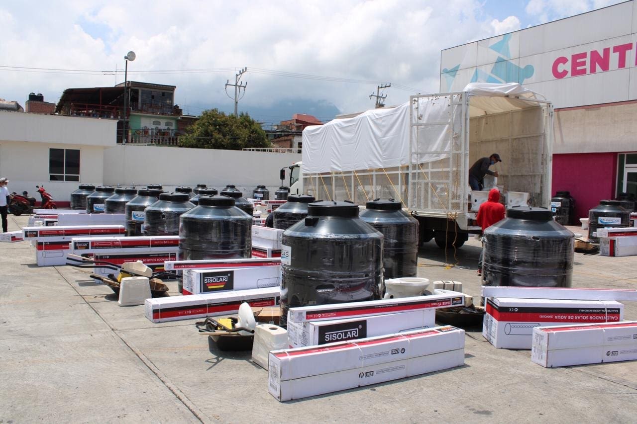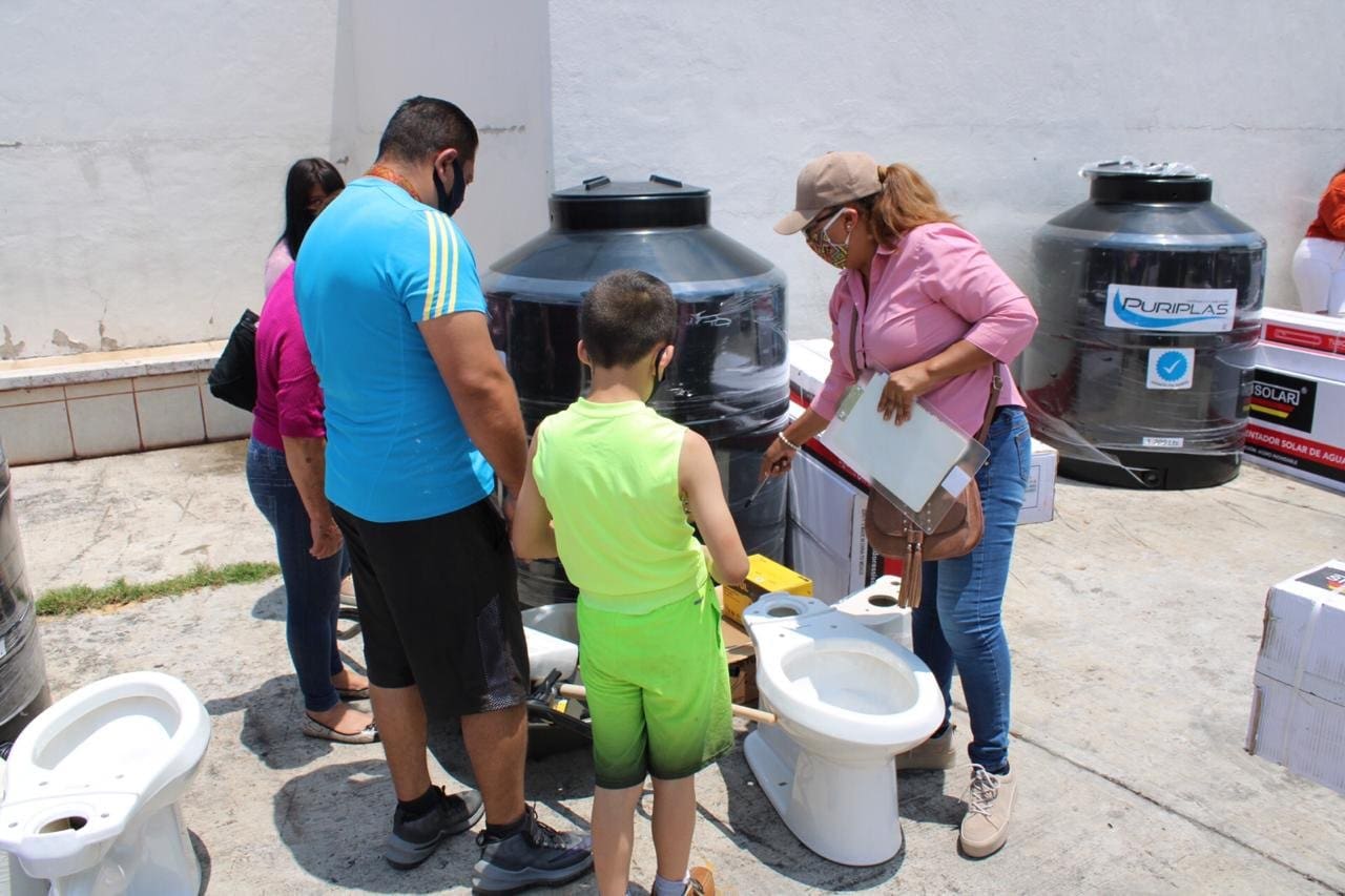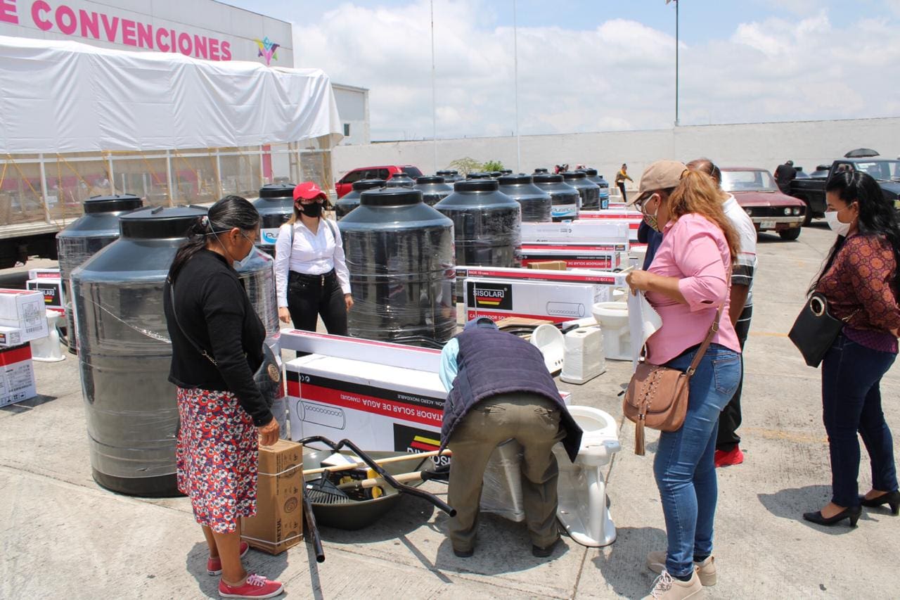 Karina Alvarado Alcántar, titular de la Mujer, dijo que este apoyo se deriva de un convenio con proveedores, entregando los paquetes que constan de herramientas para el uso diario, un tinaco, calentador solar, baño, carretilla y otros accesorios garantizados, a bajo costo.