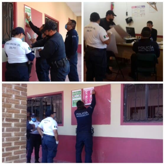 Realiza SSPM pega de carteles informativos contra COVID-19 en hospitales y jefaturas de tenencia de Zitácuaro