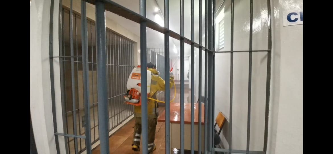 ZITÁCUARO, Mich., 9 de abril de 2020.- Este jueves, elementos de la Subdirección de Protección Civil y Bomberos a cargo del Cmte. Jose Luis Pérez Bernal, llevaron a cabo la limpieza y sanitización del area de celdas del Centro de Retención y Resguardo para Personas Infractoras de la Secretaría de Seguridad Pública Municipal.