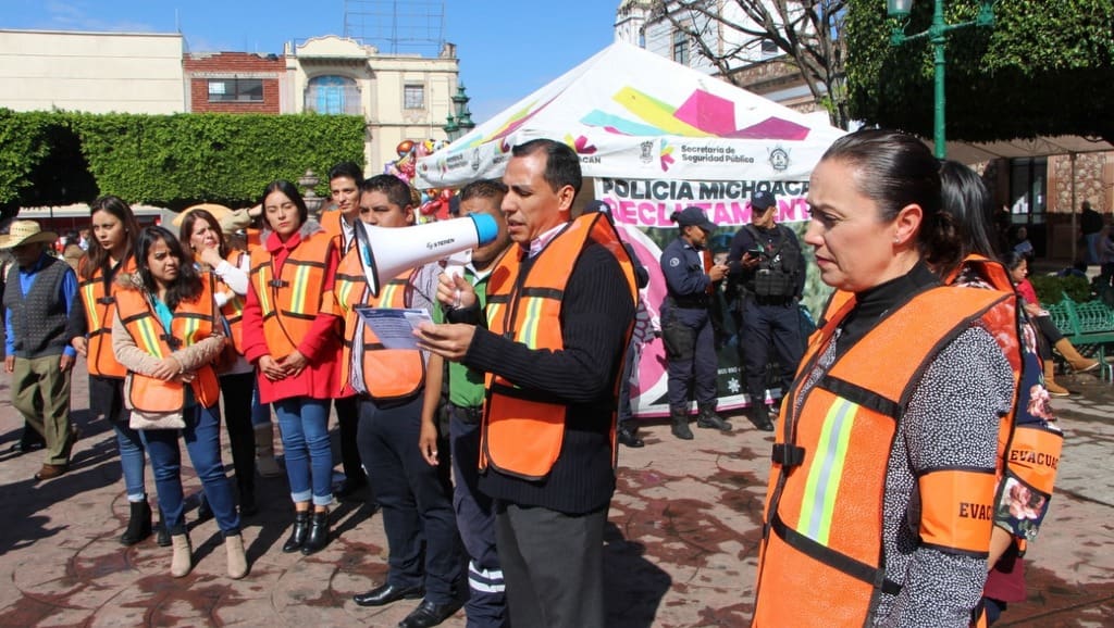 Zitácuaro, Mich.- A las 11:00 horas, en las oficinas del Palacio Municipal, sonó la alarma que simuló un sismo de 7.0 grados en escala de Richter, con epicentro en Acambay, Estado de México. Dirigidos por Protección Civil y Bomberos de esta ciudad, de manera ordenada, empleados, funcionarios públicos, autoridades y público en general, descendieron de los pisos donde se ubican las distintas áreas que conforman la administración pública municipal.
