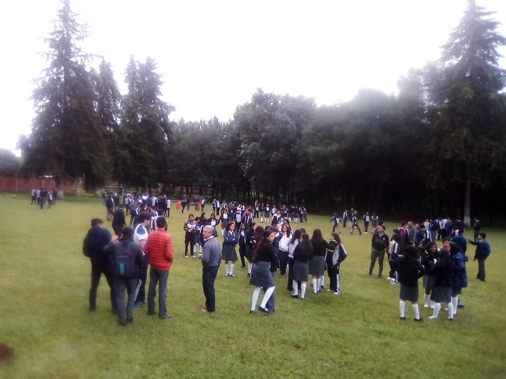 El simulacro inició las 09:01 horas, con un tiempo de evacuación 3 minutos 37 segundos; evacuando a un total de 878 personas de los cuales son 800 alumnos, 67 Docentes 10 personas del área de cooperativa 4 Bridagas.