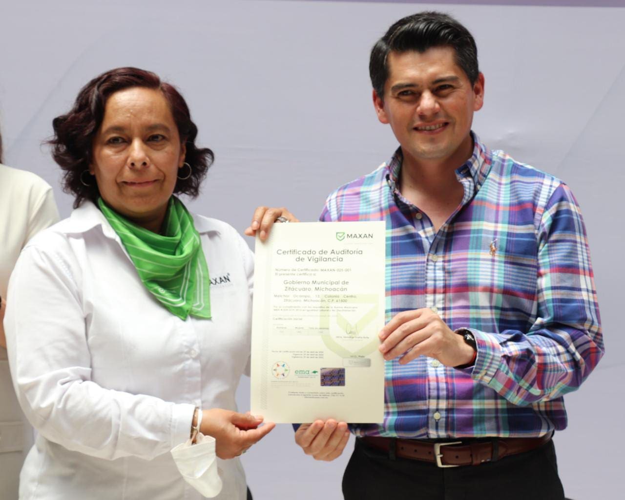Zitácuaro, Mich., 3 de agosto del 2022.- El Gobierno de Soluciones dirigido por Toño Ixtláhuac, recibió por parte de MAXAN, el certificado de la Norma de Igualdad Laboral y No Discriminación, por aplicar eficazmente dicho estándar dentro de las distintas dependencias que conforman la administración pública municipal.