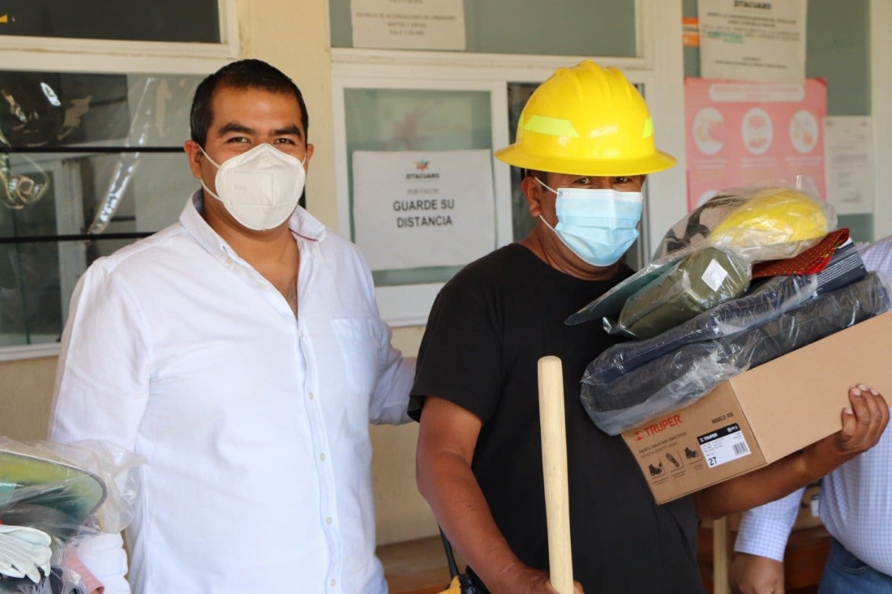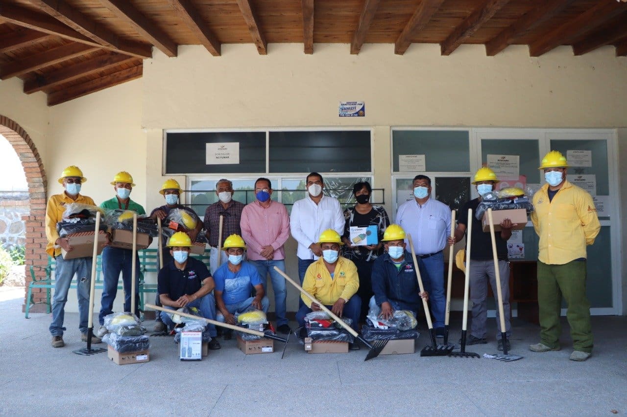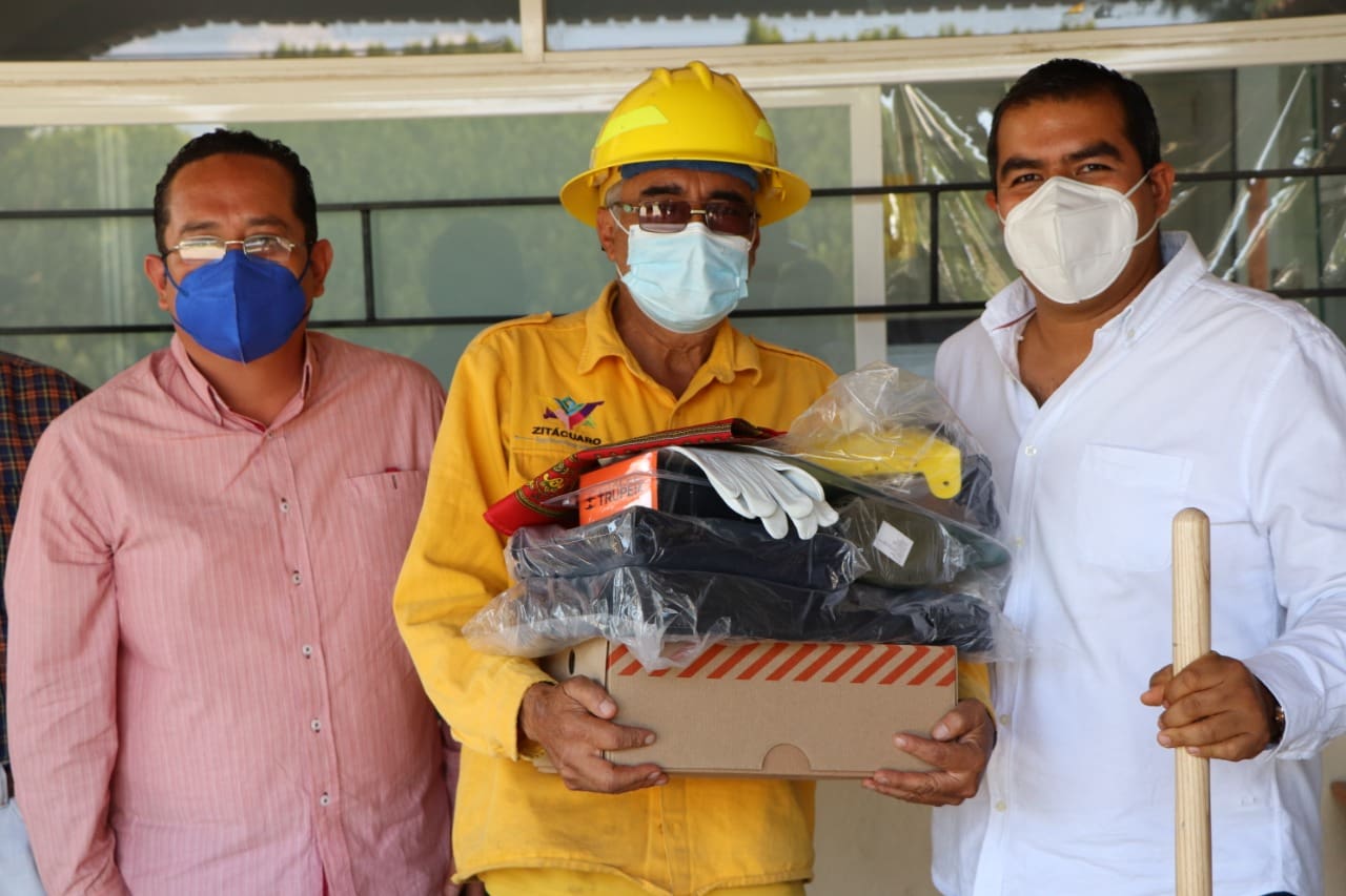 Zitácuaro, Mich., 16 de abril del 2021.- Con el objetivo de que la Brigada municipal 467 realice su labor con mayores condiciones de seguridad al momento de combatir el fuego, el presidente municipal Hugo Alberto Hernández Suárez, entregó equipamiento y uniformes a esta cuadrilla, la cual ha enfrentado de marzo a la fecha 16 incendios forestales.