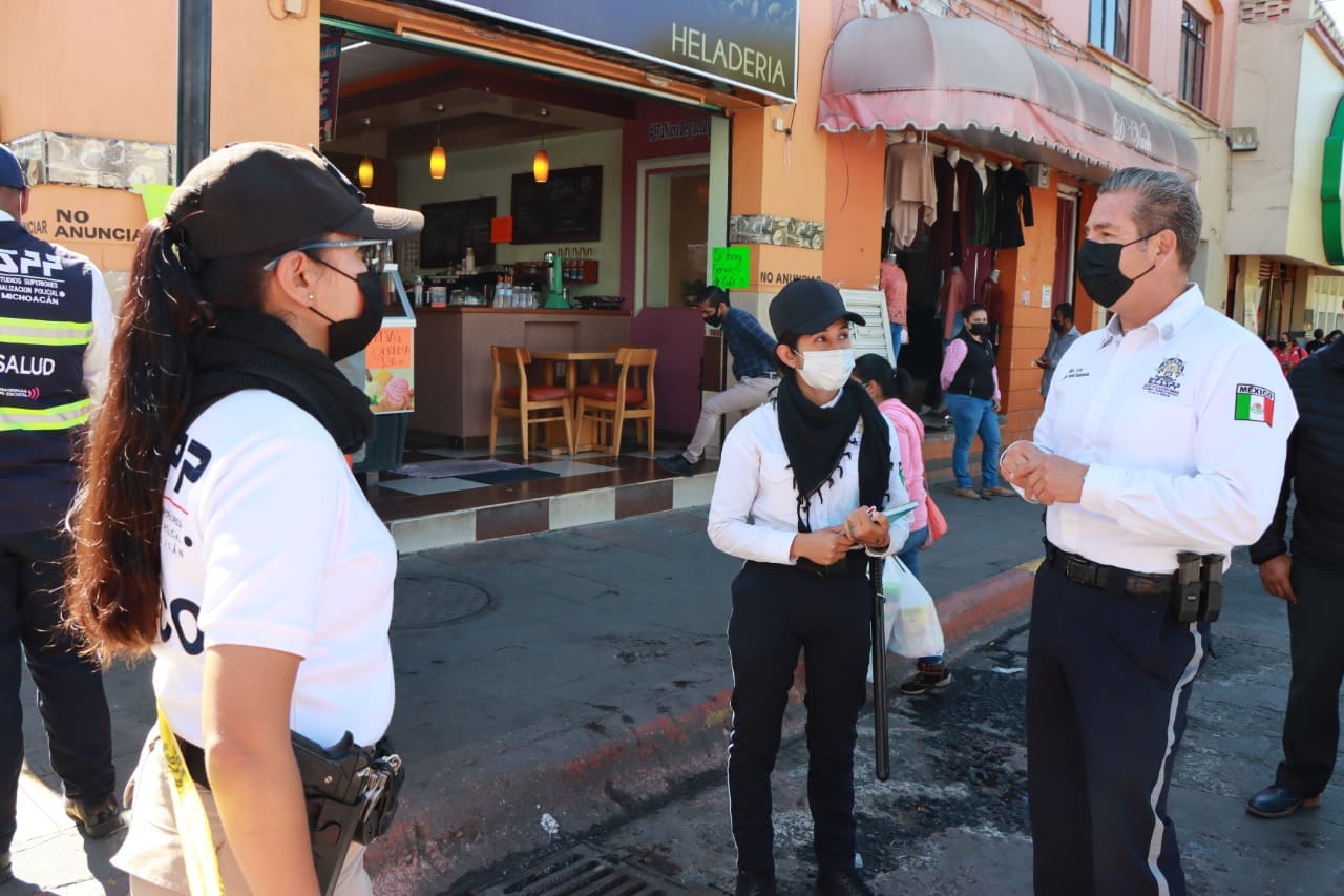 Morelia, Michoacán a 28 de enero de 2021.-En seguimiento a las acciones preventivas que realiza el Gobierno del Estado para frenar la cadena de contagio del COVID-19, el Instituto Estatal de Estudios Superiores en Seguridad y Profesionalización Policial del Estado de Michoacán (IEESSPP), reforzó las acciones dentro de los filtros sanitarios instalados en el primer cuadro de Zitácuaro.