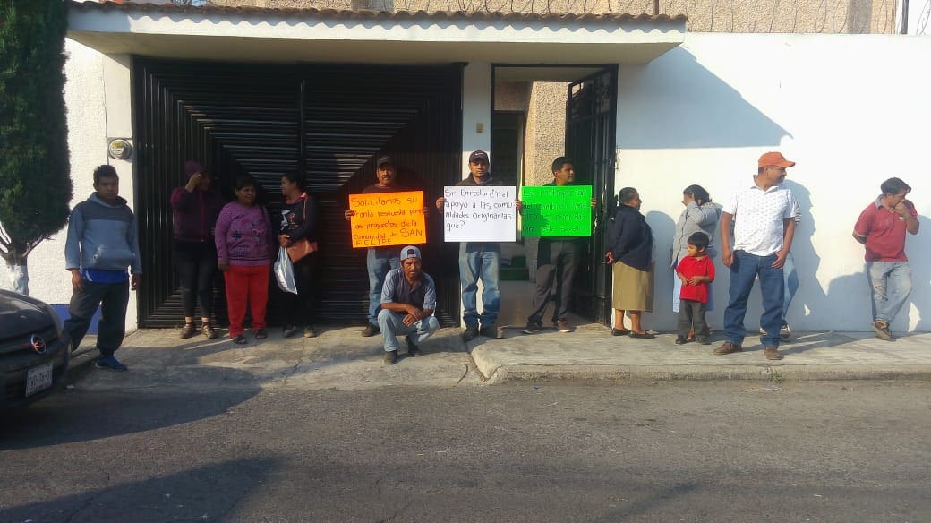 Zitácuaro. Michoacán. Habitantes de la tenencia de San Felipe de Los Alzati, se manifestaron hace unos días en las oficinas del Instituto Nacional de los Pueblos Indígenas (INPI), debido a que el presupuesto que se le destino a dicha dependencia para este año, no es suficiente para todas las necesidades que tiene esta comunidad indígena, sobre todo en el tema de los proyectos productivos.