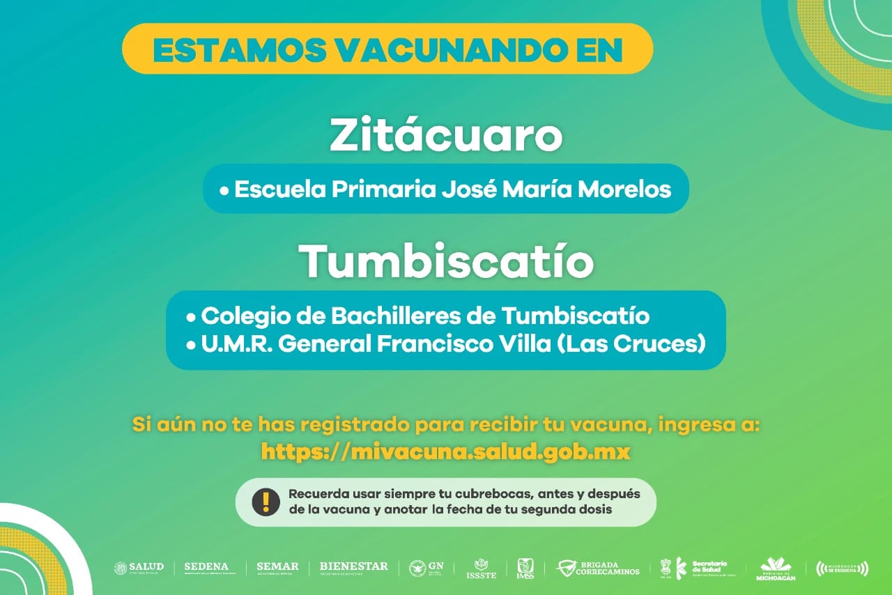 Se mantiene activa la vacunación anti COVID-19 en Zitácuaro y Tumbiscatío