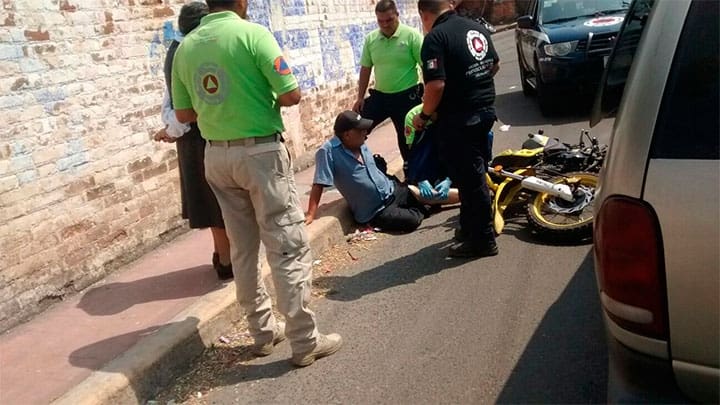 El conductor de la motocicleta presentaba Contusión en Rótula Izquierda, siendo atendido en el lugar por personal de protección civil, posteriormente el motociclista se trasladó por sus propios medios a un nosocomio.