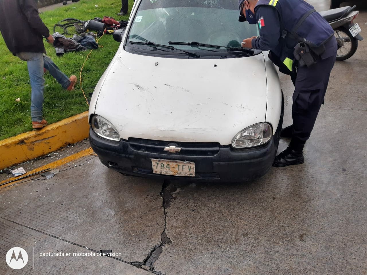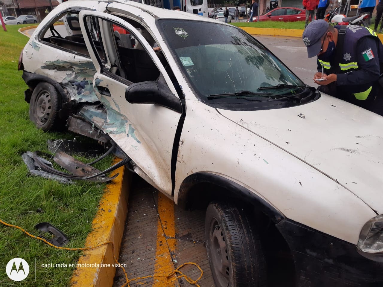 Al llegar al lugar se confirma la novedad tratándose de un choque entre 2 vehículos, se trata de un Chevrolet tipo Chevy color blanco con placas de circulación “X” del Estado de México, el cual era conducido por el C. “X” de 47 años de edad, con domicilio en la colonia La Mangana, a la valoración de los elementos de bomberos, presentaba dolor en serviciales, se niega a ser trasladado y se queda en el lugar.