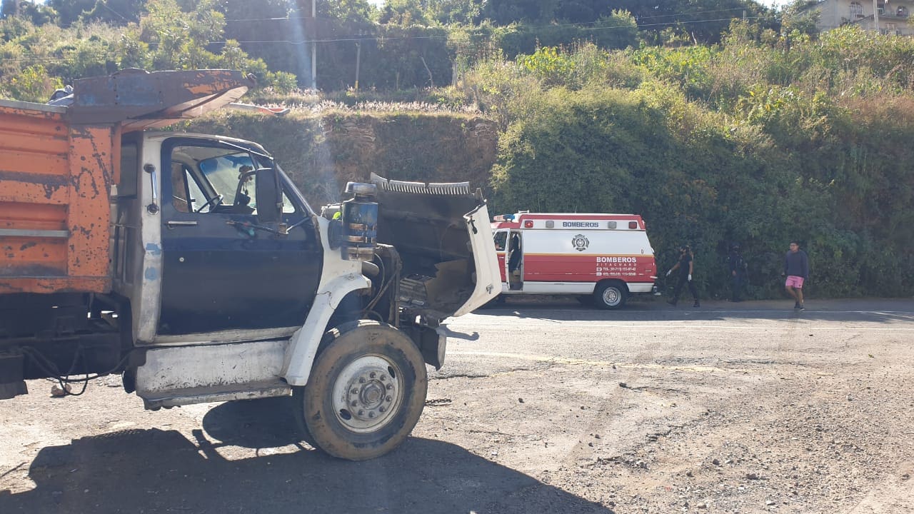 Se trata de un vehículo marca Chevrolet, tipo volteo, color blanco, el cual era conducido por un masculino de nombre 56 años de edad, quien a la valoración de los elementos de auxilio presentó lesión cortante a la altura de parienta derecho.