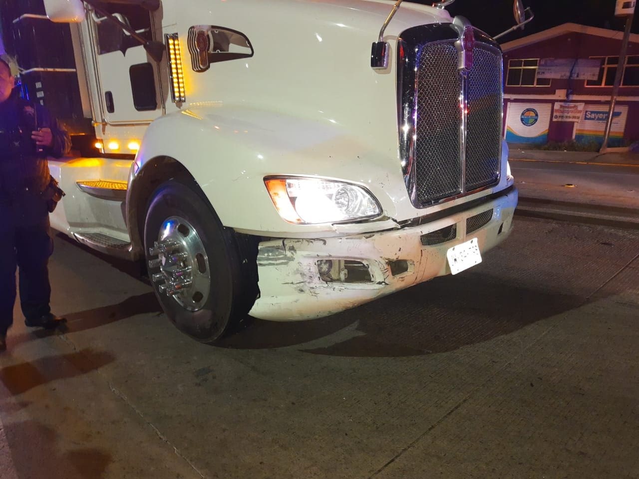El otro vehículo involucrado es un trailer de la marca Kenworth de color blanco con placas “X” conducido por el C. “X” de 52 años, con domicilio conocido en el municipio de Tuxpan, sin presentar ninguna lesión aparente.
