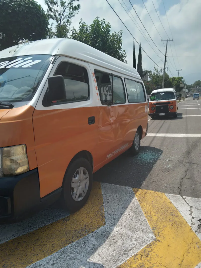 Al arribar se visualiza dos vehículos, el primero de la marca Nisssan tipo combi color naranja, el otro es un Torton color azul, se desconoce datos de ambos conductores, ya que no quisieron proporcionarlos, no hubo personas lesionadas.
