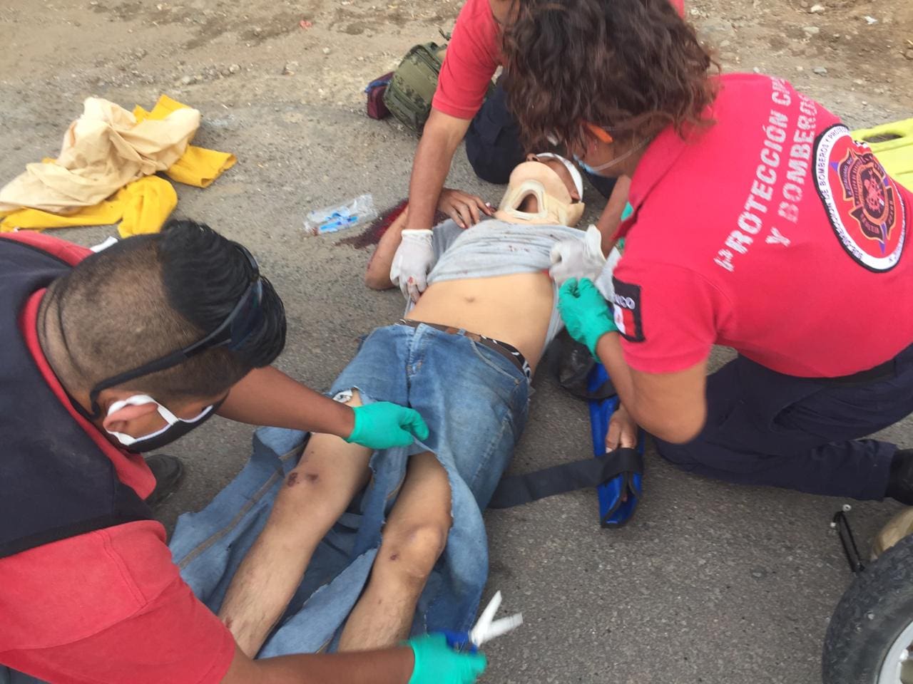 Se trata de un joven de 28 años de edad, con domicilio conocido en la comunidad de Puentecillas; quien conducía una motocicleta marca italika tipo FT-125, color a azul marino,sin placas de circulación,el cual a la valoración de los elementos de auxilio, presentó herida avulsiva en parte parietal lado derecho, así mismo policontundido, con quemadura de aproximadamente 4 centímetros en peroné extremidad inferior derecha; además con posible fractura en falanges extremidad superior izquierda,quién fue trasladado al Hospital Regional para su atención médica.