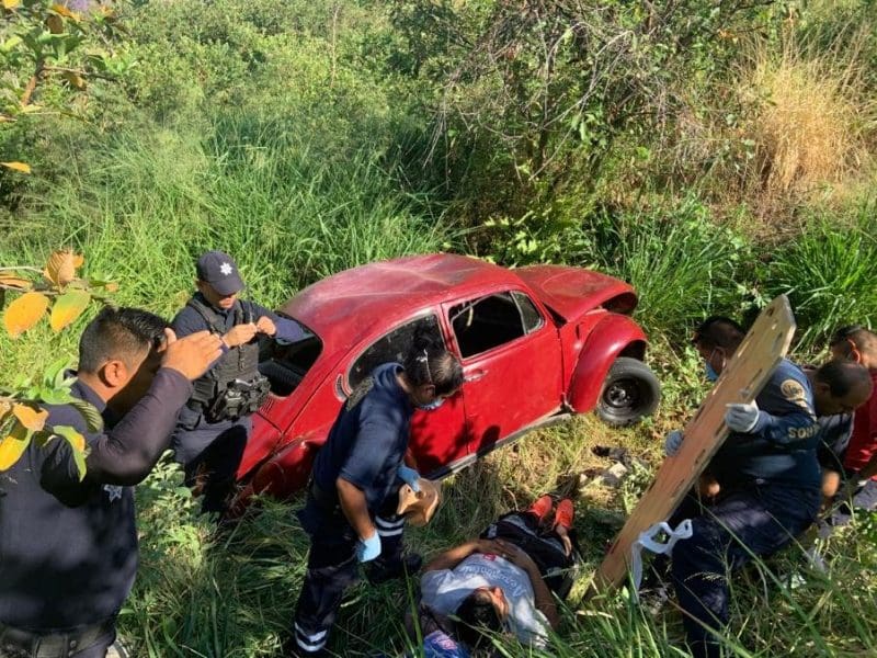 El vehículo involucrado es un Volkswagen tipo bochó de color rojo sin placas de circulación, el cual era conducido por un masculino de 23 años de edad, con domicilio en la calle Nicolás Romero del municipio de Benito Juárez, quien a la valoración de los elementos de auxilio presentó posible fractura en fémur proximal y posible compromiso en cervicales,por lo que trasladado al Hospital Regional para su valoración médica.