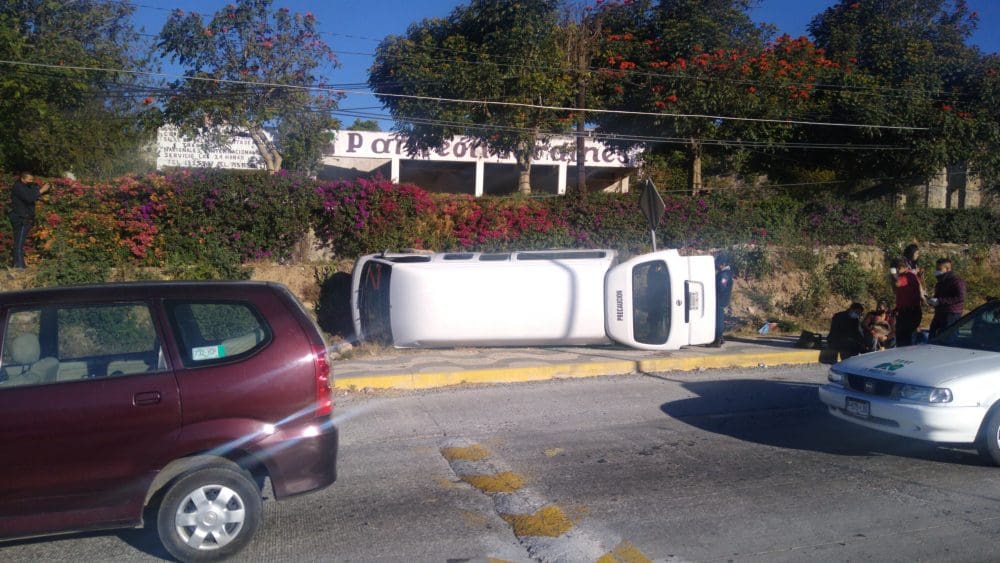 Zitácuaro, Michoacán. – Bomberos Zitácuaro reportó una volcadura frente al Panteón Jardines, hay varios lesionados.