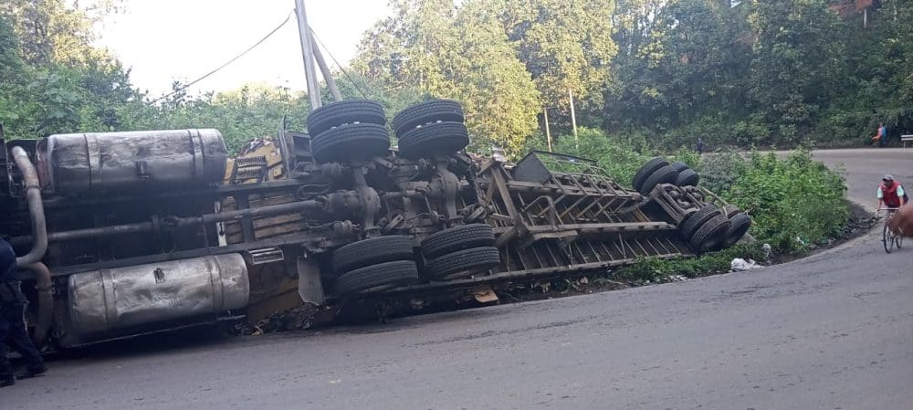 De lo sucedido comenta el conductor que le ganó el peso pasando las curvas del gato, lo que provocó que volcara
