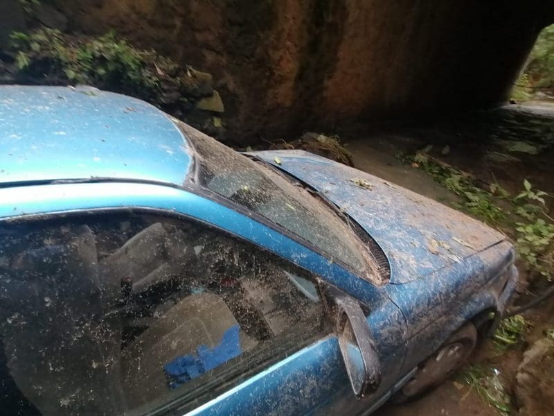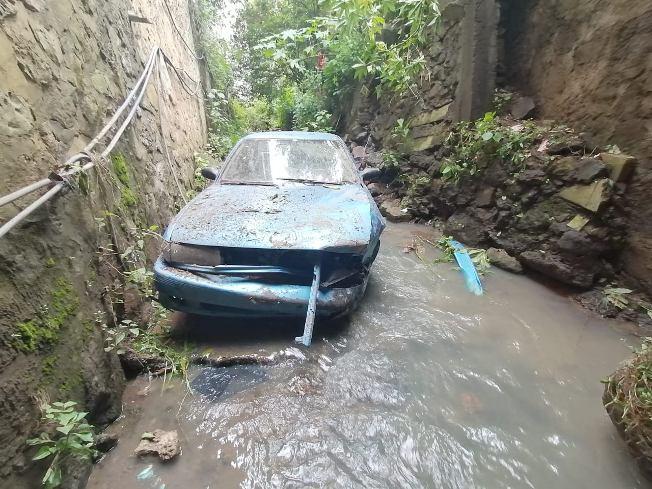 Se trata de vehículo de la marca Tsuru, color azul, el cual se encontraba al fondo de un barranco, desconocednos más datos ya que se encontraba abandonado.