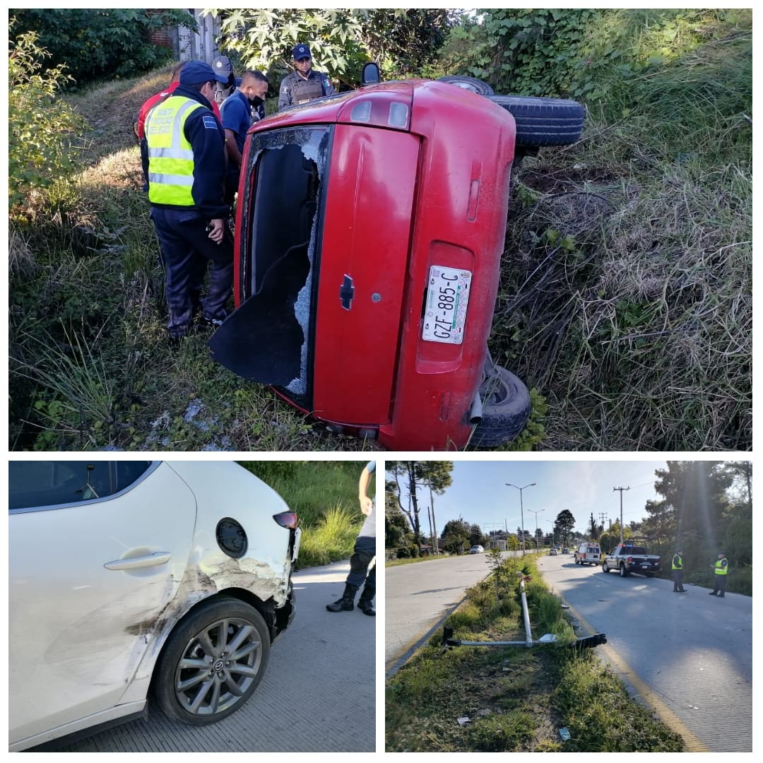 Se trata de un vehículo volcado en un barranco de aproximadamente 5 metros de altura, estando el vehículo abandonado y otro vehículo que había sido impactado al parecer, por el primer vehículo, tirando un poste de alumbrado público.