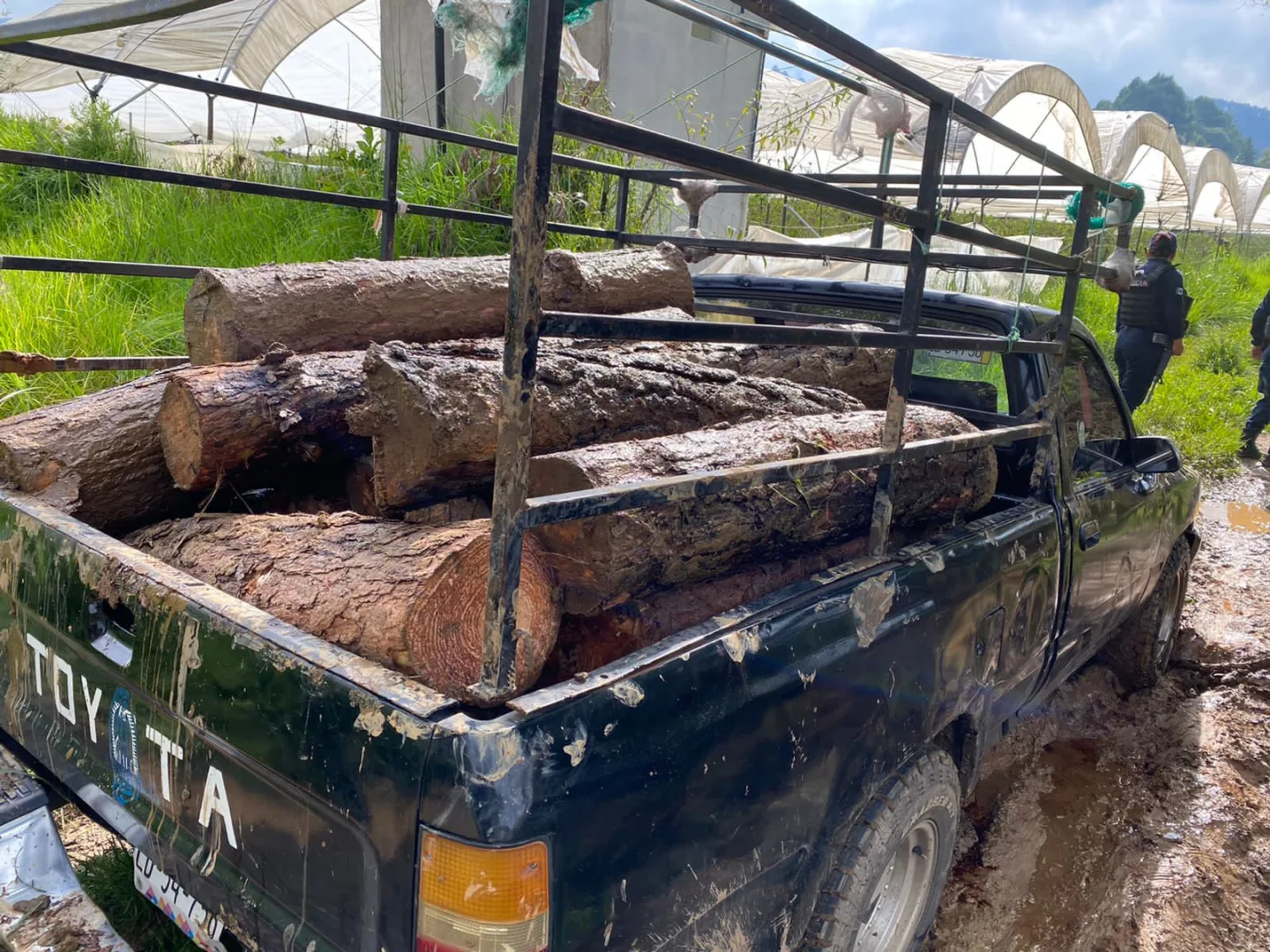 SSP decomisa rollos de madera presuntamente procedentes de tala ilegal, en Zitácuaro