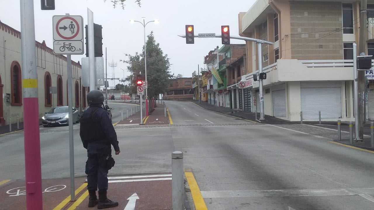 Con el cierre de los establecimientos comerciales formales e informales, se visualiza hasta el momento una mínima afluencia en las calles y colonias como en aquellos puntos o zonas consideradas de mayor afluencia como lo es el primer cuadro de la ciudad y las inmediaciones de la central camionera.