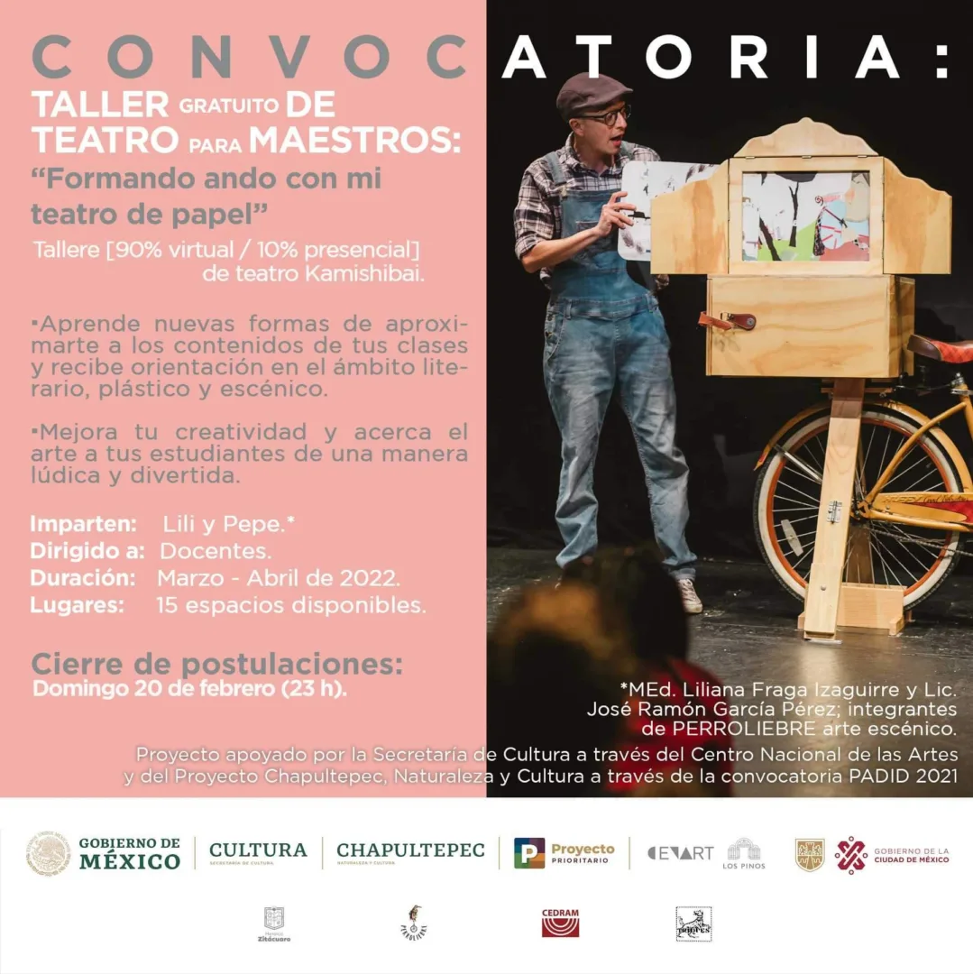 PERROLIEBRE arte escénico, en colaboración con la Subdirección de Cultura de Zitácuaro, y el Centro Dramático de Michoacán (CEDRAM), realizarán de manera gratuita un taller de teatro para docentes (90% a distancia / 10% presencial), en Zitácuaro y sus comunidades.