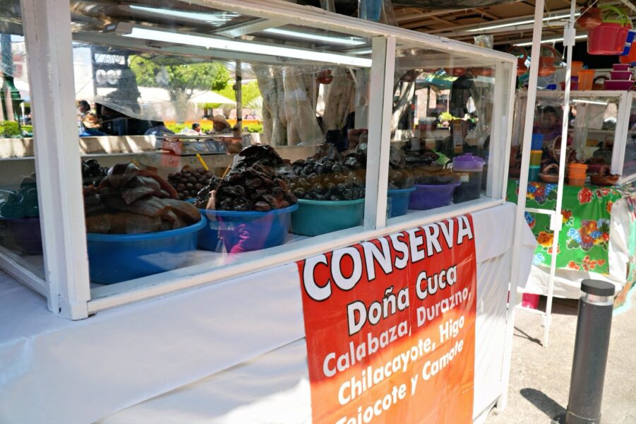 Rita Isabel Reyes, representante del grupo de comerciantes, informó que la exhibición se localiza en la intersección de las calles Lerdo y Ocampo, en las inmediaciones de 5 de mayo. La oferta comercial incluye variedades de dulce de conserva elaborados con entre 10 y 12 tipos de frutas, además de las tradicionales “tortas” de fruta combinada.