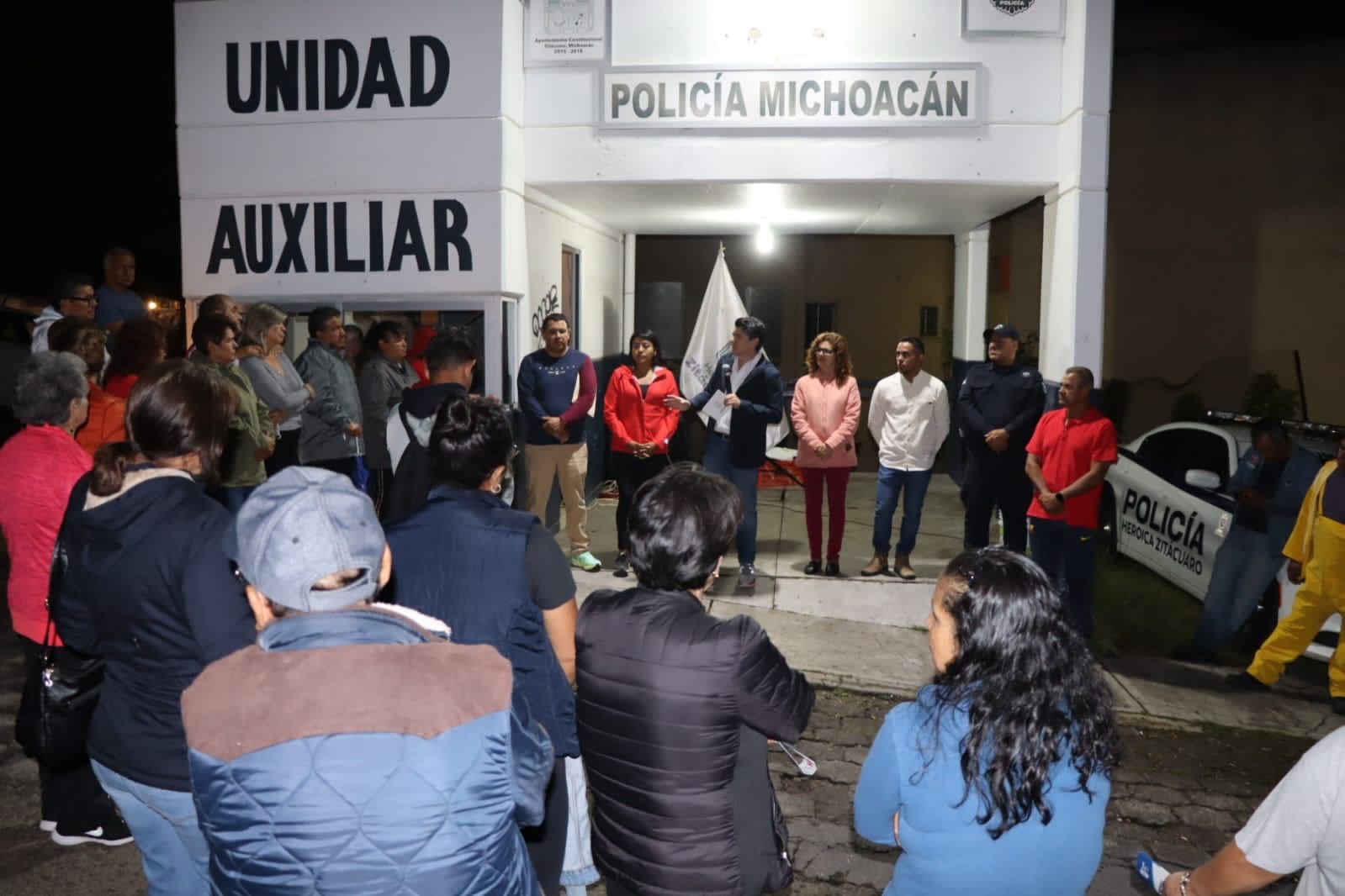 Toño Ixtláhuac entrega alumbrado y caseta de vigilancia en la colonia Poetas de Zitácuaro.