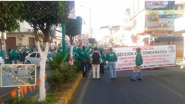 En una manifestación totalmente pacífica los trabajadores de la región Zitácuaro, aseguraron que lo que exigen es un cambio de gobierno, el cual genere empleos, construya clínicas, hospitales y que rescate al campo, que invierta más dinero en la educación pública y que la inseguridad y violencia que se vive hoy en día se termine.