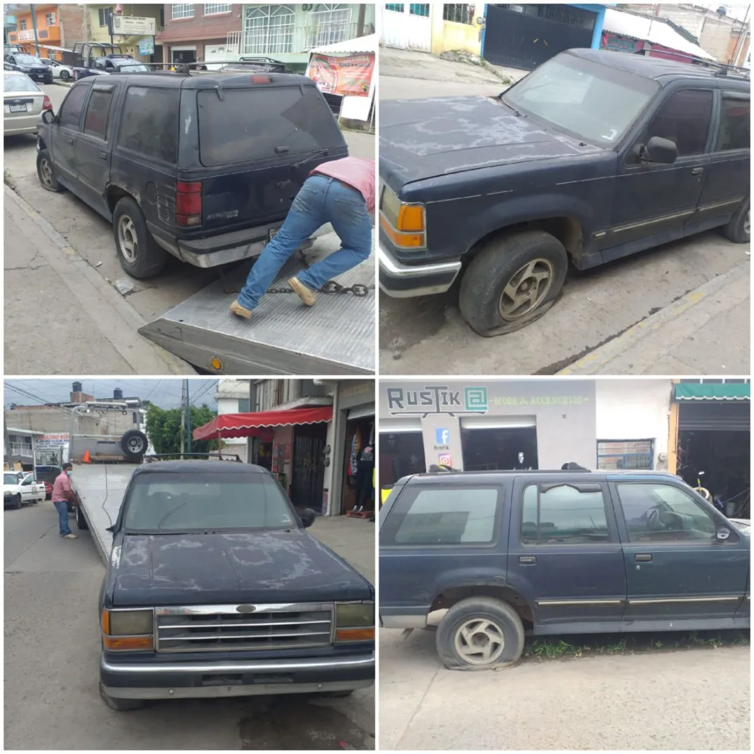 - Jeep Comander – tipo Trac 4×4 color naranja, privada de José María Coss Oriente, estado de abandono 8 años.