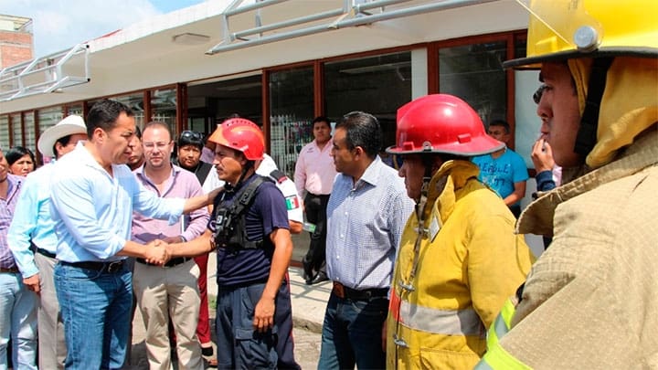 En punto de las tres de la tarde, el alcalde dio banderazo de salida al Cuerpo de Bomberos para trabajar en labores de apoyo en la Ciudad de México; son 12 elementos, dos vehículos y se les dotó de las herramientas necesarias para acudir en la zona que hasta el momento ha sufrido mayores daños.