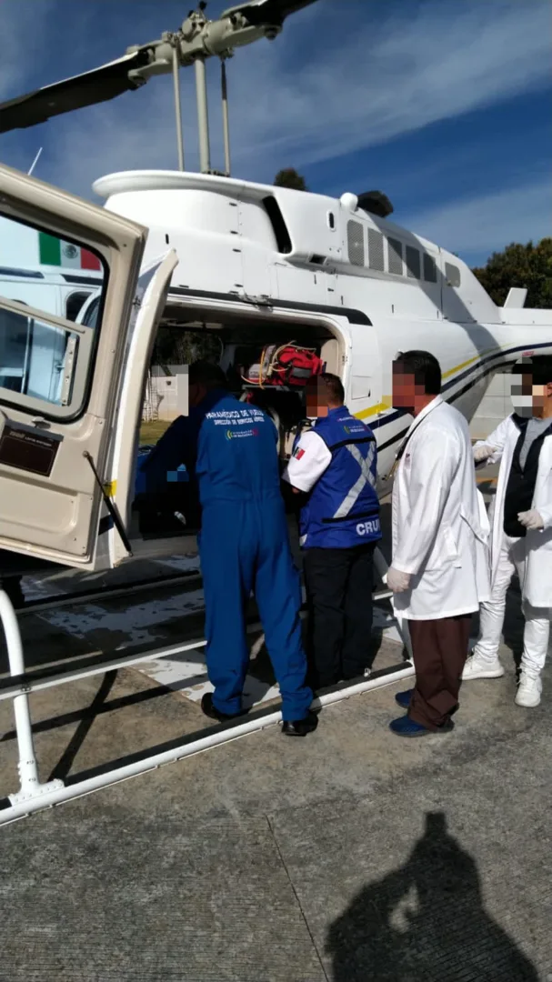 El infortunio se registró en el municipio de Zitácuaro, lugar donde la infante sufrió quemaduras de segundo grado tras un incidente con agua caliente, por lo que de manera inmediata se solicitó la acción aeromédica, para canalizarla en el Hospital Infantil de Charo.