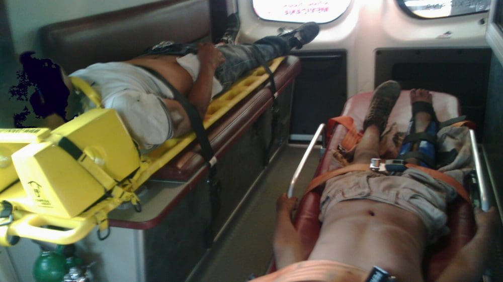 Miguel ángel Ramírez González de 17 años de edad, con mismo domicilio; resultó con una Herida Lacerante de aproximadamente 4 centímetros en el miembro inferior izquierdo, más Múltiples Contusiones y Abrasiones en el Cuerpo.