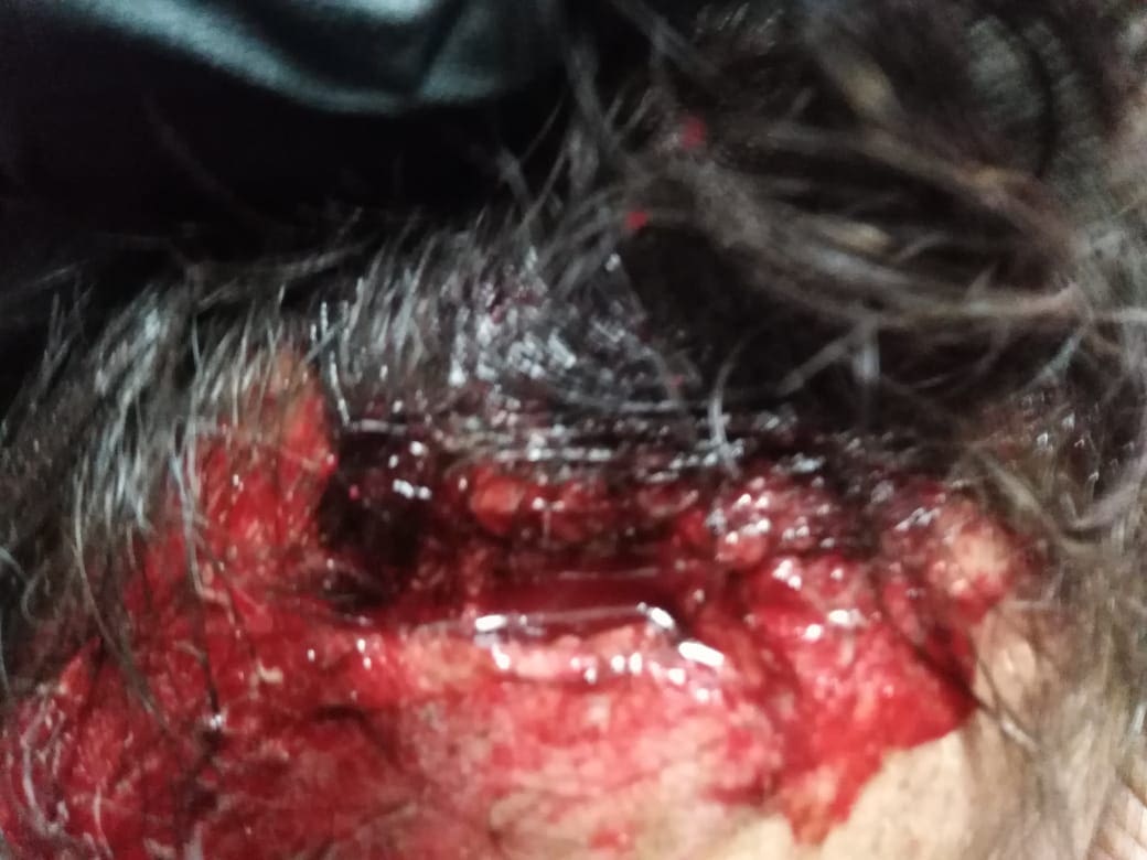 Lo acompaña el menor de 4 años de edad, con mismo domicilio, el cual a la valoración de los elementos presenta crisis nerviosa, herida cortante con desprendimiento en la parte frontal del cráneo de aproximadamente 4 centímetros, más laceraciónes en su extremidad superior derecha y laceraciones en ambas rótulas, por lo que se le dan las primeras atenciones en el lugar y se traslada al hospital regional, para su valoración y atención medica.