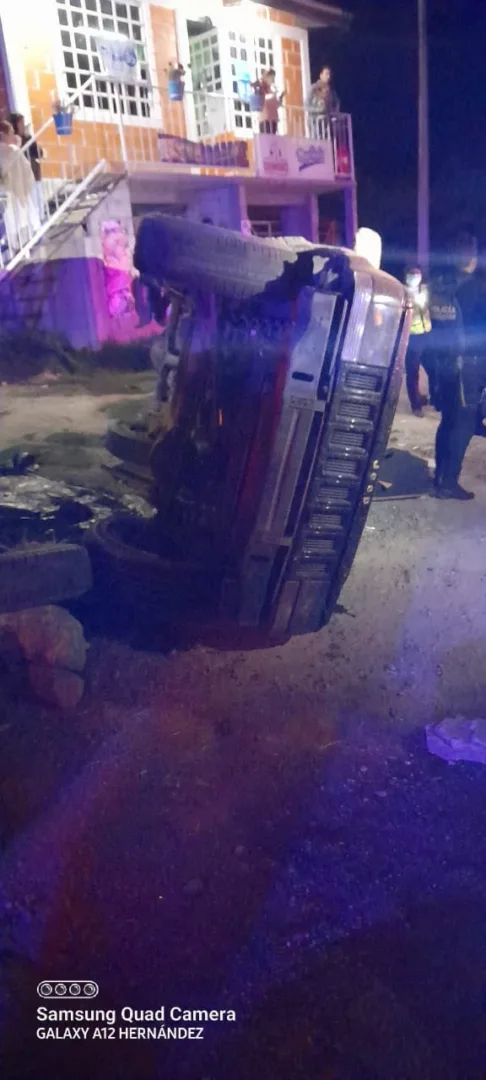 Se trata de una camioneta marca Jeep tipo phatfinder, color negra con placas de circulación del estado de México, la cual quedó volcada sobre el costado del conductor resultando lesionado un joven de 23 años, el cual a la valoración de los elementos presentó posible compromiso en cervicales, así como golpe contuso en pelvis, por lo que fue trasladado al hospital general para su atención y valoración médica.