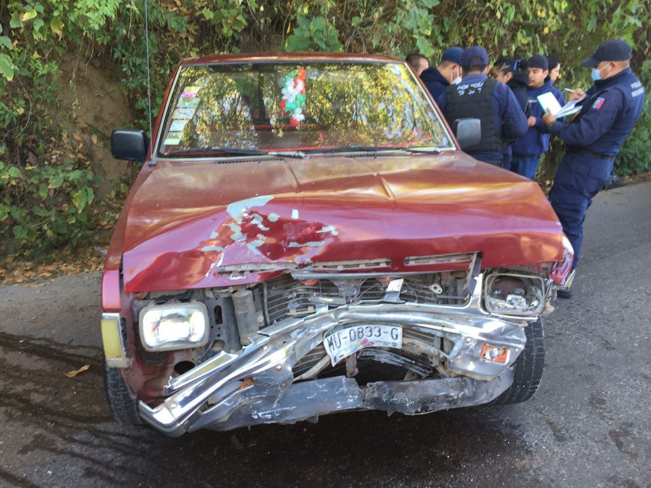 Se trata de un vehículo Nissan color guinda con placas del Estado de Michoacán, la cual era conducida por un ciudadano de 38 años de edad, con domicilio en El Aguacate, el cual a la valoración presentó fractura de tobillo del miembro inferior derecho, a petición de los familiares se trasladó por sus propios medios al hospital general de Ciudad Hidalgo.