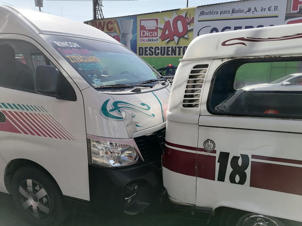 Una mujer resultó lesionada en percance vehicular entre dos unidades de transporte público en Zitácuaro.