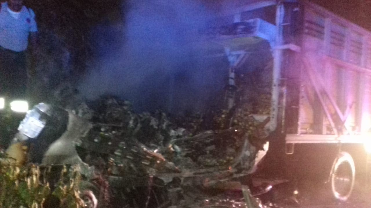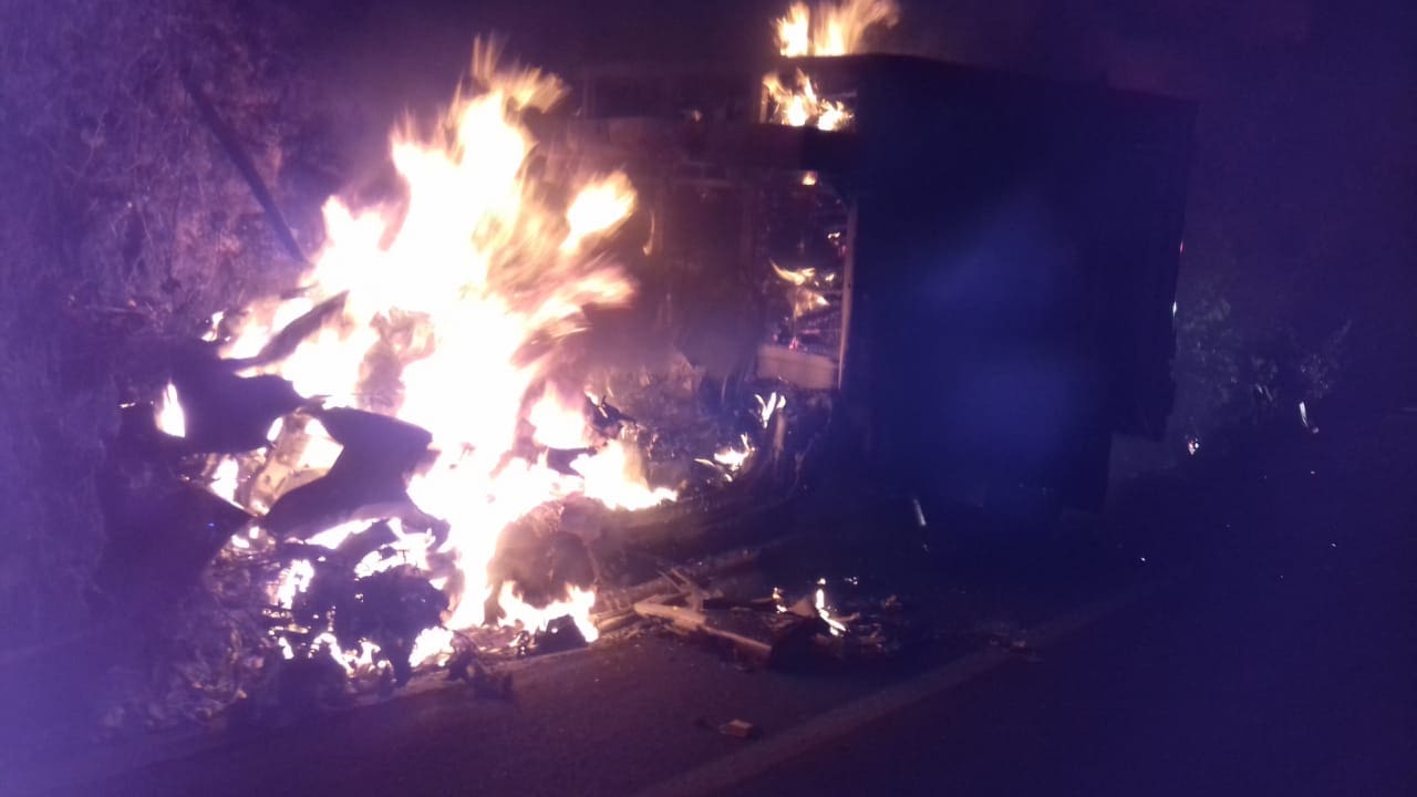 De la camioneta Ford se desconocen los datos del conductor, ya que no se encontraba en la ubicacion del vehículo. El vehículo se incendió en la parte de la cabina.