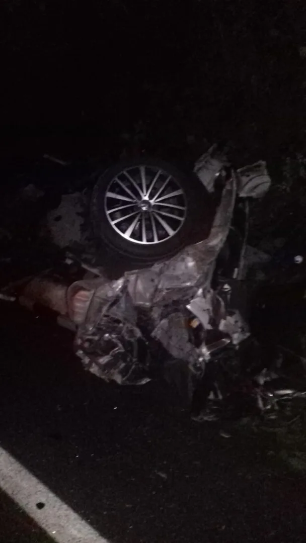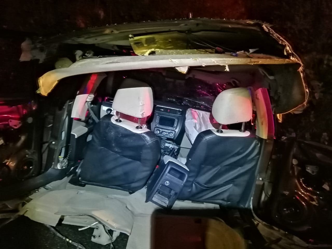 Informaron que el vehículo Volkswagen quedó partido por la mitad, a una distancia de aproximadamente 70 mts una parte de la otra, sin encontrarse personas lesionadas en el interior del mismo.