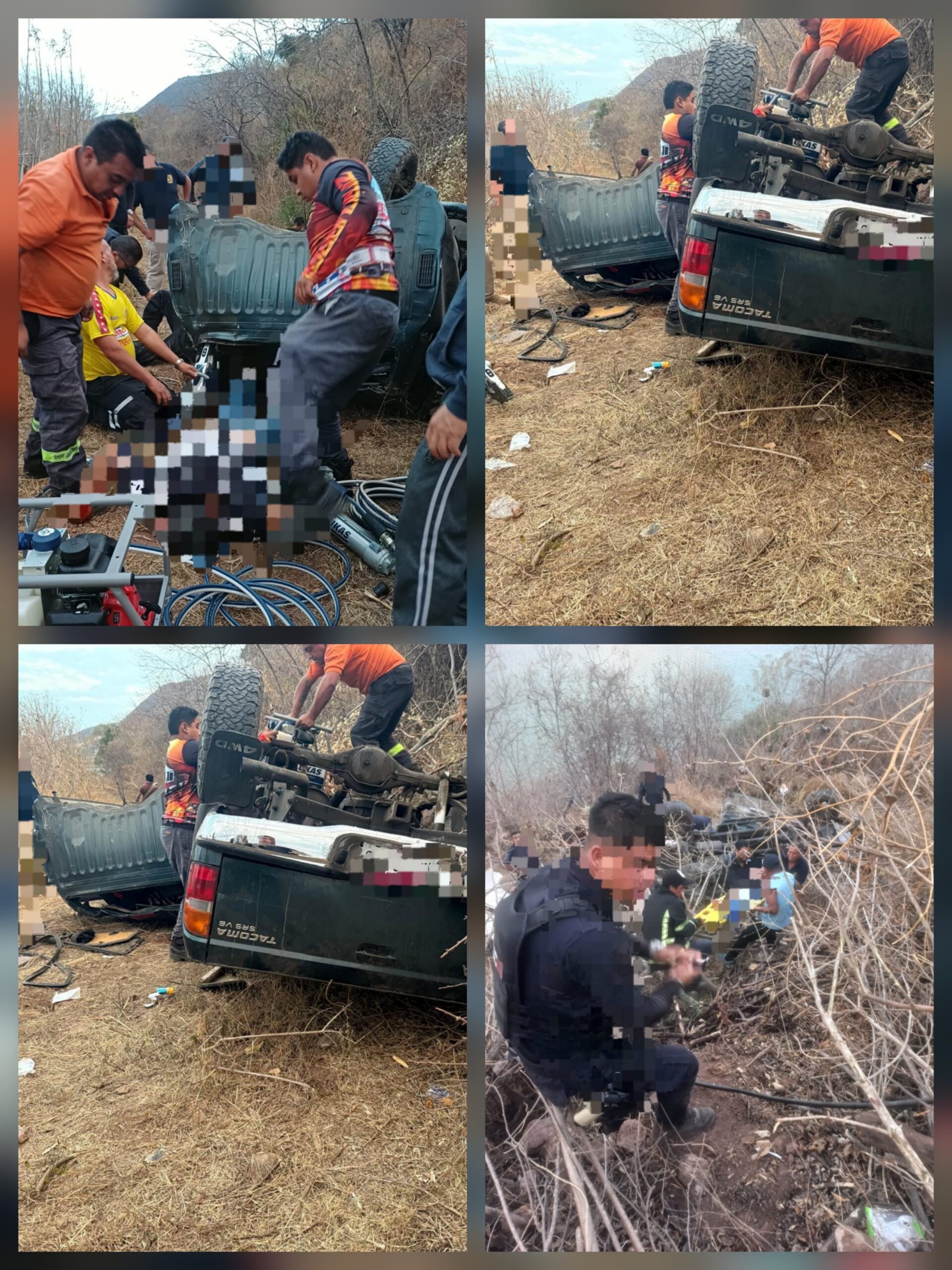 De acuerdo con el reporte oficial de la corporación, el incidente se registró a las 18:00 horas, cuando un vehículo marca Toyota, tipo Tacoma, color verde, se salió de la cinta asfáltica y cayó al fondo de una barranca de aproximadamente 30 metros de profundidad.