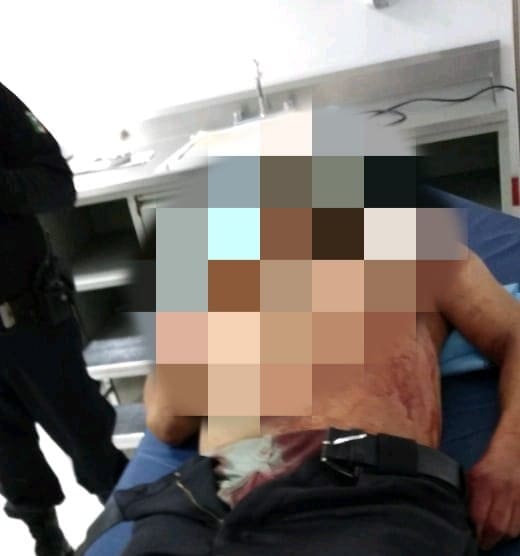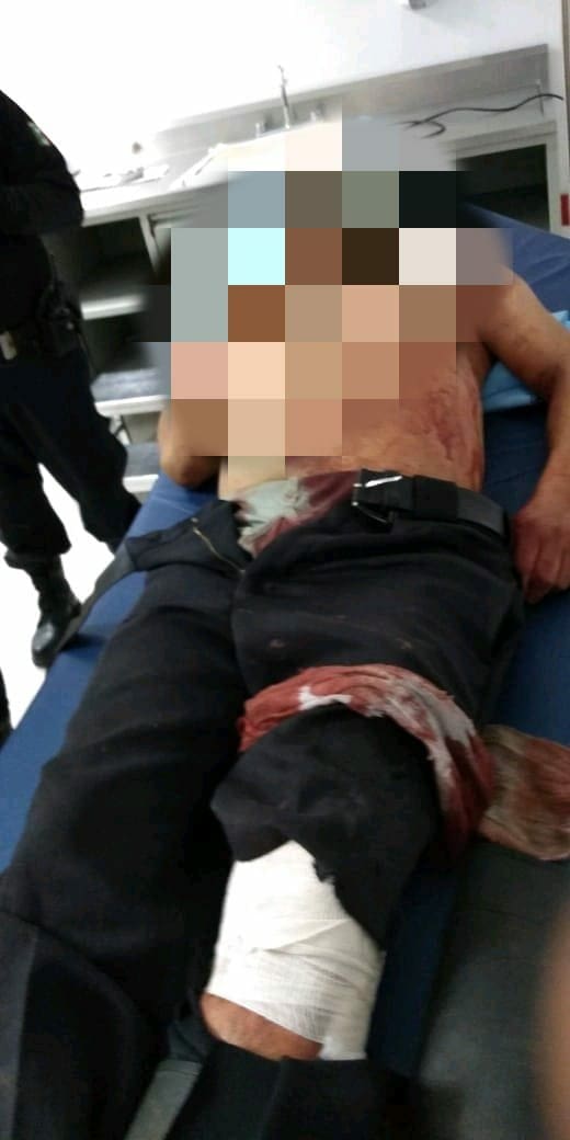 Se trata de una persona de 38 años de edad, con domicilio en la Av. Morelos de la localidad de San Felipe, el cual fue encontrado sentado sobre el piso dentro de su domicilio, a la valoración de los elementos de bomberos, presentó dos impactos de proyectil de arma de fuego al nivel de la rótula izquierda, más herida al nivel de la clavícula izquierda y presentaba hipertensión arterial.