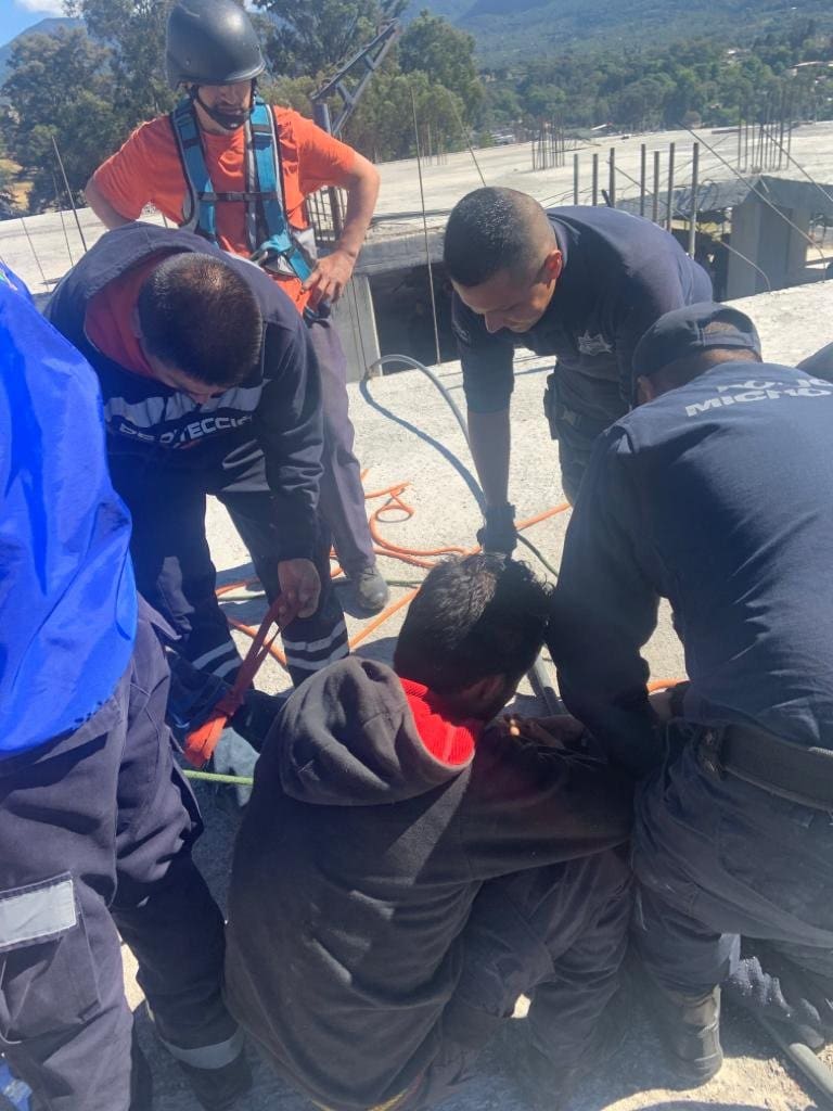 Zitácuaro. Mich. El Cuerpo de Bomberos y Protección Civil, recibió un reporte vía telefónica, manifestando que en un edificio en construcción ubicado en Avenida Revolución Sur, casi a llegar al monumento a La Bandera, había una persona con intentos de lanzarse de la azotea del edificio.