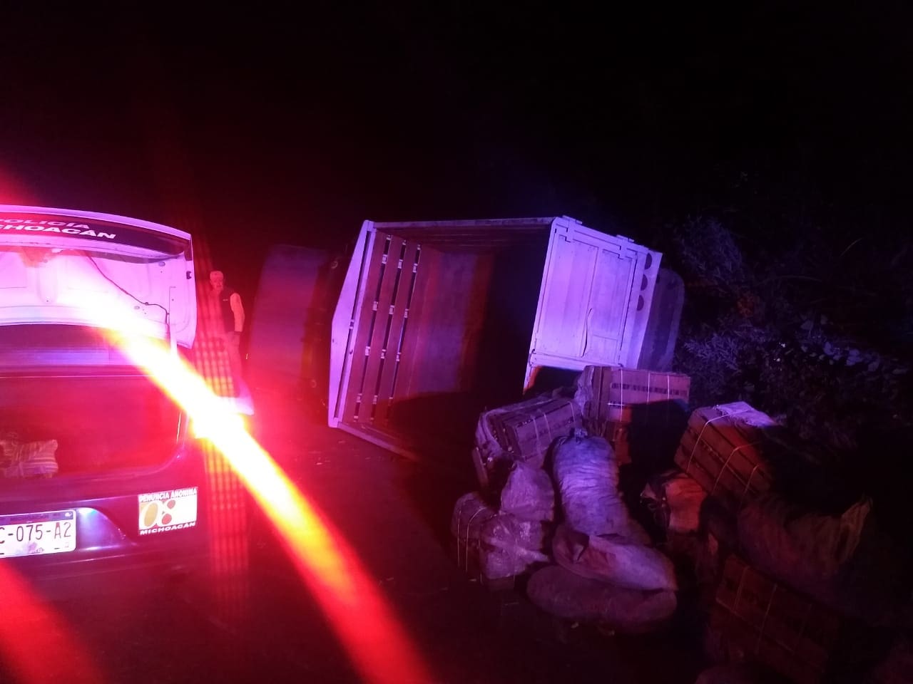 Volcadura en Las Curvas del Gato deja daños materiales en Zitácuaro