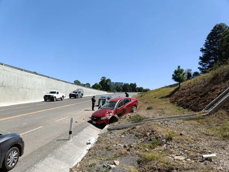 Al llegar al lugar, los bomberos encontraron un vehículo Chevrolet Cruce de color rojo con placas del Estado de México, el cual se había salido de la cinta asfáltica y quedado volcado sobre su costado izquierdo.