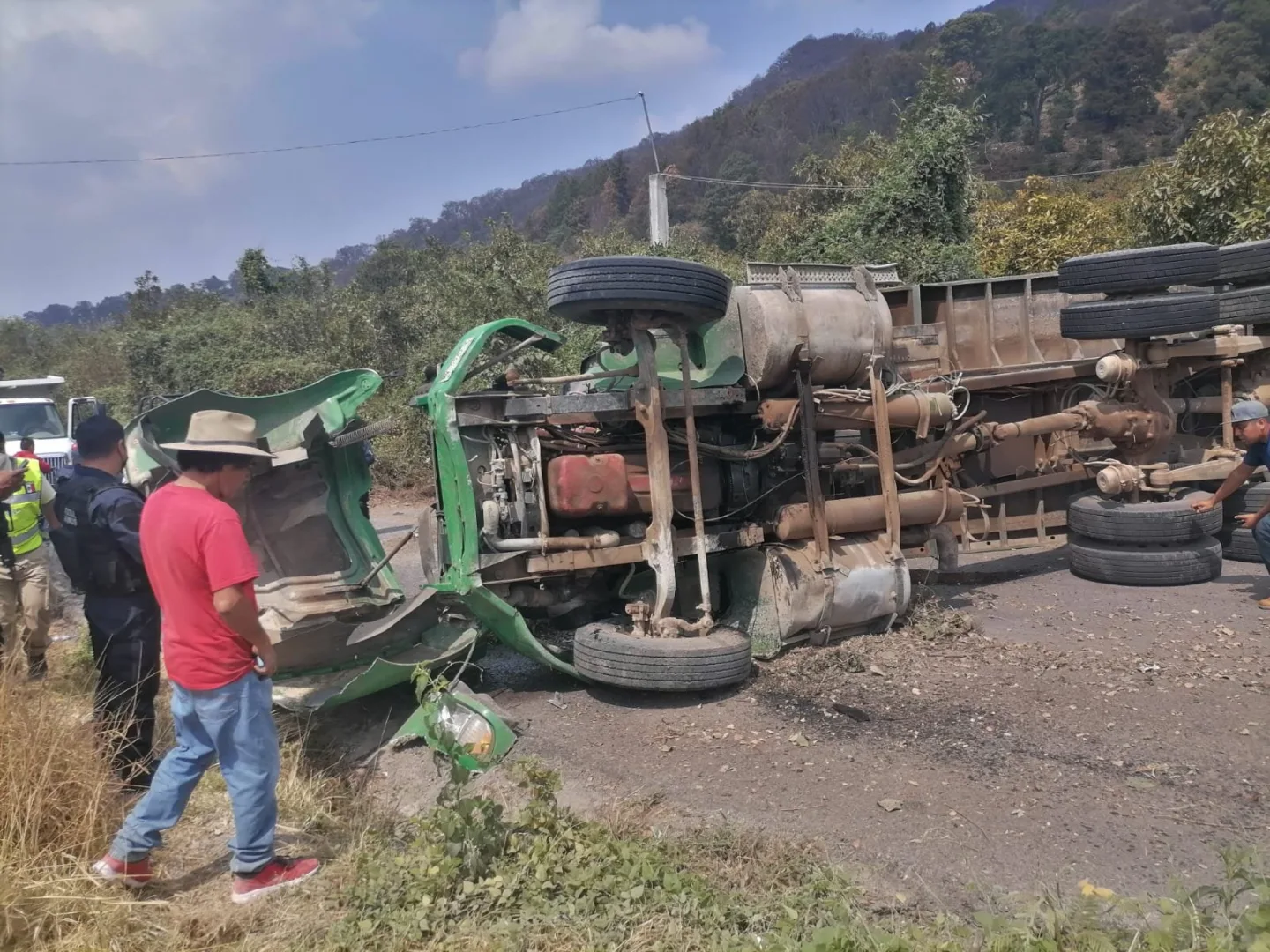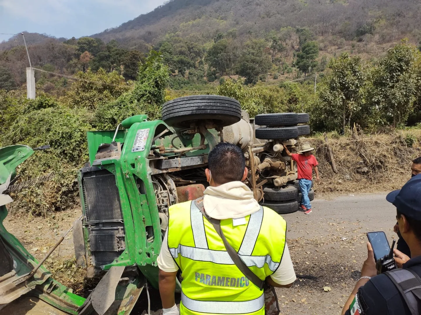 Se trata de un vehículo tipo Torton de la empresa CAPISA con número económico 2, el cual volcó sobre la cinta asfáltica, se desconoce el estado de salud del conductor, ya que al arribar los cuerpos de auxilio, la unidad se encontraba abandonada.