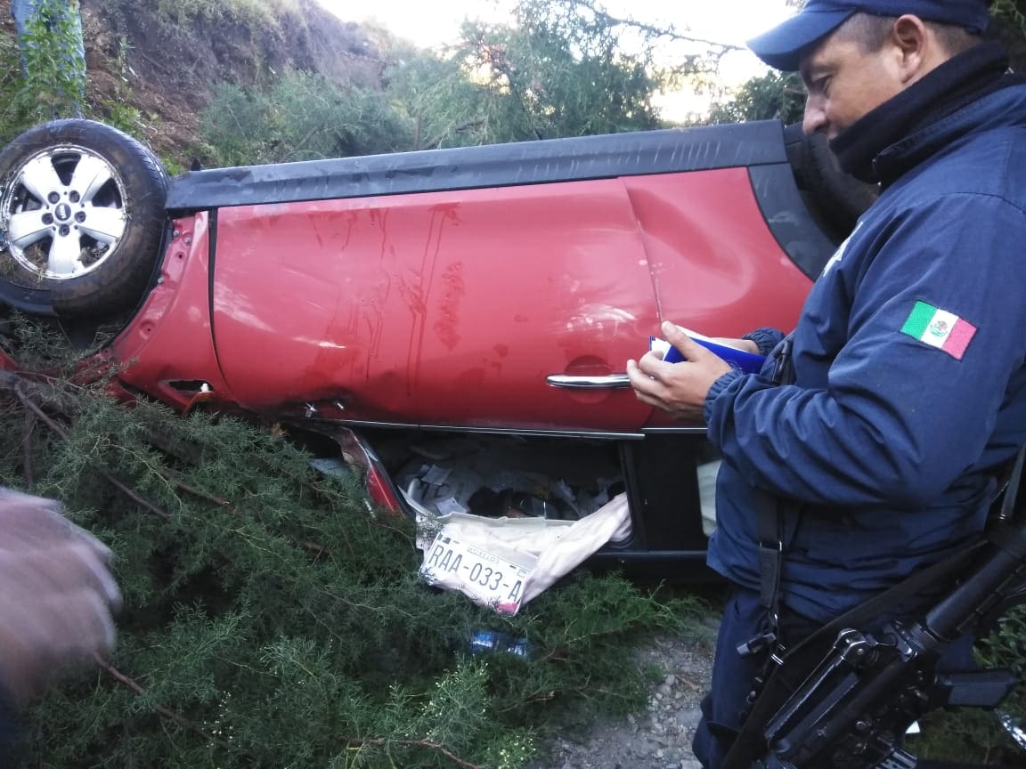 Zitácuaro. Mich. El Cuerpo de Bomberos y Protección Civil, recibió un reporte vía radio comunicación, manifestando que había un vehículo volcado en la carretera libre Zitácuaro- Toluca, a la altura del lugar conocido como La Dieta.
