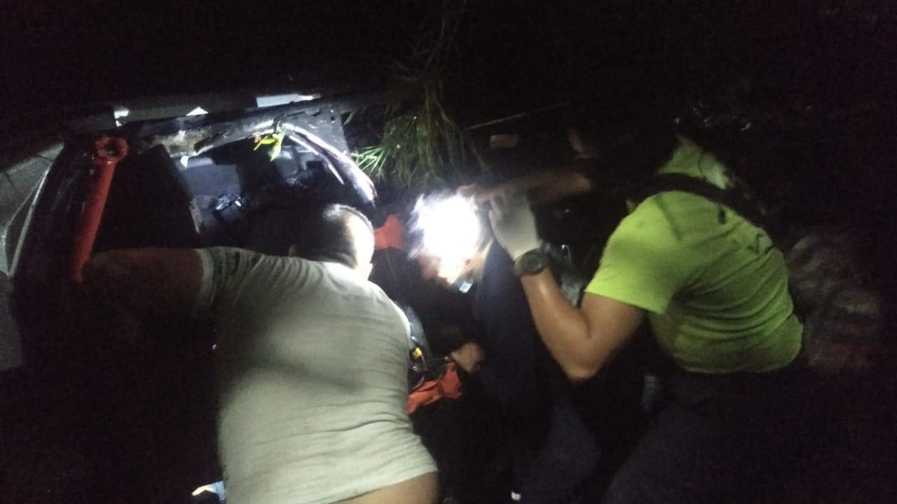 A la valoración de los elementos de auxilio, el sujeto presentó herida en parte frontal del cráneo de aproximadamente 6 cm. así como heridas en varias partes del cuerpo. Por lo que inmediatamente se procedió a realizar maniobras que permitieron extraerlo del vehículo, para posteriormente ser trasladarlo al Hospital Santa Rosa.