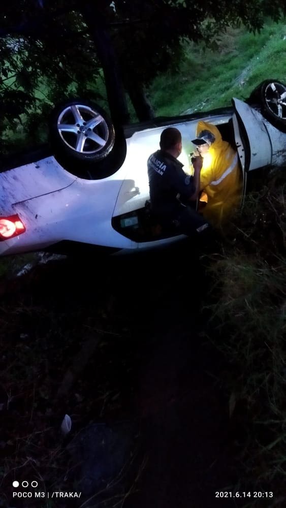 Al llegar al lugar se contacta con la novedad donde se ven involucradas las siguientes personas, masculino de 30 años de edad, con domicilio en González Ortega, su acompañante de 26 años de edad con mismo domicilio, viajaban en un Volkswagen Bora color blanco con placas del Estado de México.