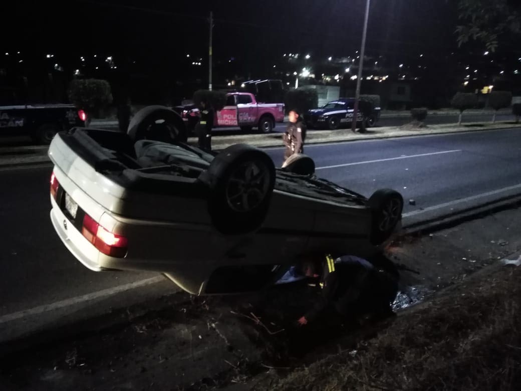 ZITÁCUARO, Mich., 04 de marzo de 2019.- En recorridos de prevención del delito y vigilancia obre el libramiento Suprema Junta Nacional de Americana SJNA, frente a las oficinas del Instituto Nacional Electoral INE, elementos de la Policía Michoacán, visualizaron un automóvil volcado.